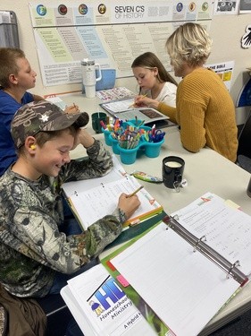 Our hybrid program blends the best aspects of homeschool and a classroom setting. Parents work together in partnership with our teachers and students to provide the best education possible. We provide support for parents as they teach at home and for students as they learn a Biblical worldview in all aspects of learning. Hybrid parents have significant responsibility and accountability to ensure at-home work is completed and students comprehend what they’re learning on the homeschool days.